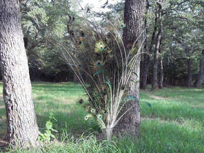 As daylight shortens, and evenings grow cooler, our Peacocks begin their annual molt. Each morning as we head out for our chores, we find the signs of Fall coming....in Feather Bounty. We love our Peacock family and delight in their antics, but we are simply enchanted by Mr. Peacock's regal train. Gorgeous and lush. Reason enough for him to be Proud and Cocky. He's handsome and he knows it!